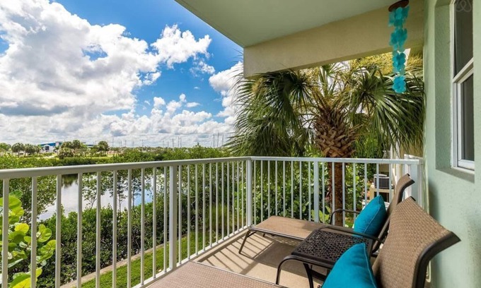 Enjoy waterfront views from the two back private balconies, and enjoy the resort view from the front two balconies. We often spot dolphins while sitting on the back balconies! This townhome is beautifully decorated with a calming beach theme and well maintained throughout.