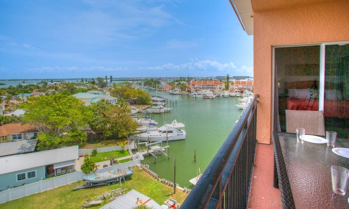 Waterfront Top Unit w/Marina. Across from the Beach. Spacious w/2 Private Balconies, Pool & Hot Tub | Condo in Madeira Beach