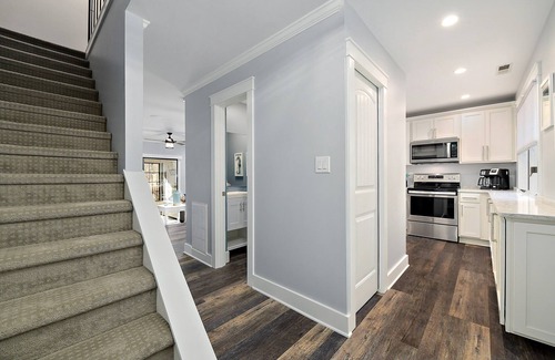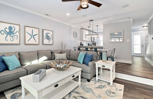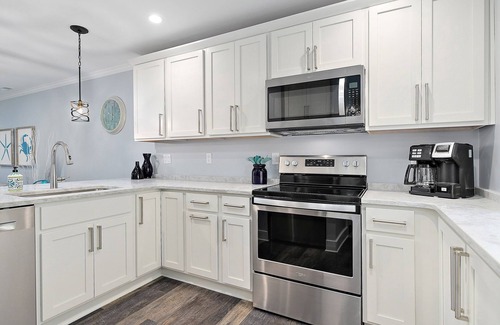 Our home is thoughtfully equipped to make your vacation as relaxing as possible. The updated kitchen features stainless steel appliances, a microwave, dishwasher, coffee maker, and washer/dryer. The inviting living area boasts a 55" TV, electric fireplace, audio system, WiFi, and plenty of cozy seating—perfect for family movie nights or unwinding after a day at the beach.