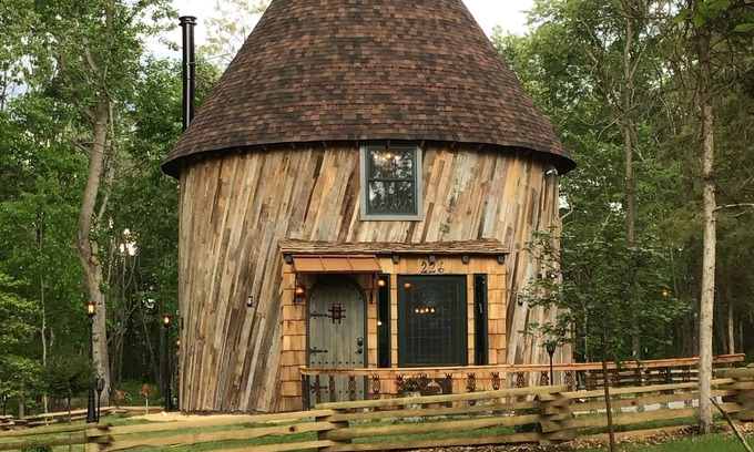 Where Hobbits vacation above ground when in the "Virginia Shire". This unique, whimsical creation will sleep up to 4 guests. Hobbits do love luxury and you will find that and more here at Hobbit House! We offer in house surround sound with SiriusXM and a Bluetooth connect feature, gorgeous large tiled shower, a wood burning fireplace, outdoor grill, fire ring area, screened in porch and hot tub. Management is available 24/7 with just a phone call or text.
