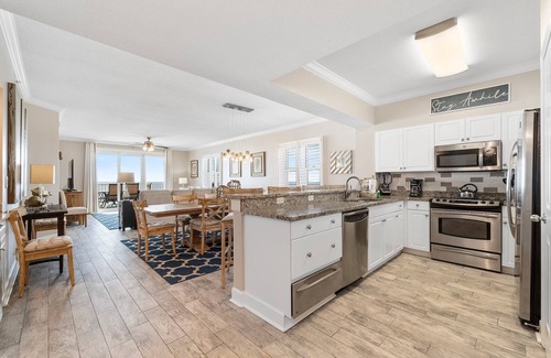 Designed for both culinary enthusiasts and casual cooks, the gourmet kitchen features updated stainless steel appliances, custom cabinetry, generous counter space, and a convenient breakfast bar. The dining area offers an elegant setting to gather with loved ones and create lasting memories. Accommodating up to 12 guests, the master and second bedrooms each boast a king bed, the third bedroom offers a queen, and the fourth includes a twin-over-full bunk with a twin trundle. Whether planning a family vacation or a friends’ retreat, this luxurious Gulf Coast escape is ready to make your dream getaway a reality. Contact us today for more details—we can't wait to welcome you to Perdido Key!