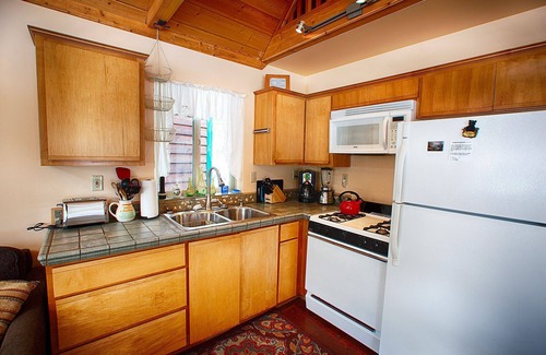 The kitchen has all the cookware and dinnerware that you will need to prepare and serve meals. The kitchen also has a microwave oven, toaster, blender, coffee grinder, and coffee maker.