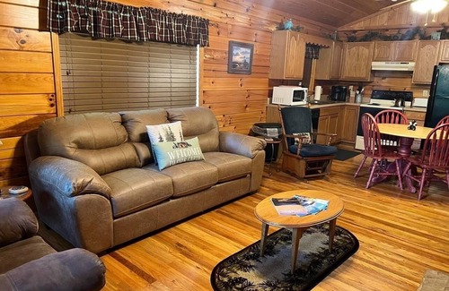 Step into your own Beary Tale! Private cabin in Hidden Springs Resort. Romantic, beautiful 1-bedroom cabin next door to Dollywood, less than 5 minutes to the Parkway, and 10 minutes from the Great Smoky Mountain State Park entrance. Flat, easy access paved roads in all seasons, cabin close to entrance of resort. Newly acquired cabin, updated and managed by experienced 5-star owners. Not a duplex! Nestled in, at the end of the street, surrounded by woodlands, beside a little waterfall and babbling brook. Screened in back porch with outdoor hot tub and fairy lights with Bluetooth speakers to play your music. Vaulted ceiling and huge stained glass windows, and heart shaped jacuzzi! See-through fireplace to softly light and warm the living area and bedroom in season, beside the heart shaped jetted tub. Beary Tale is a retreat surrounded by natural beauty. We also invest in monthly inspection and treatment to prevent bedbugs and pests. Pure comfort and relaxation in a prime location to come and go and recharge with no loss of time in travel. Indoor domed pool available in all seasons. to come and go and recharge with no loss of time in travel. Indoor domed pool available in all seasons. Easy access flat winter roads. Your Happily Ever After starts here. A super clean, cozy place to create your own love story!