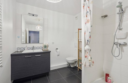 The studio features a well-appointed space with a cozy double bed and a practical bunk bed, guaranteeing a restful sleep after a busy day exploring the wonders of Paris.
